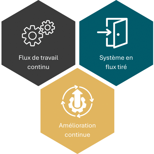 • Planifier en flux tiré et organiser le travail en fonction de la demande réelle, plutôt que de prévoir des tâches en avance (flux poussé). Cela permet d’adapter la charge de travail aux capacités réelles de l’équipe, d’éviter les surcharges et d’optimiser l’efficacité opérationnelle.