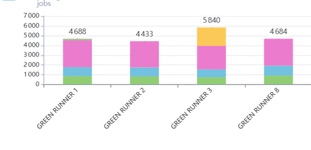 - Lisser la charge en réallouant des tags aux autres runners GREEN – cela augmentera de manière minimale le temps d’exécution et d’attente des autres runners GREEN, tout en déchargeant fortement le runner GREEN 3